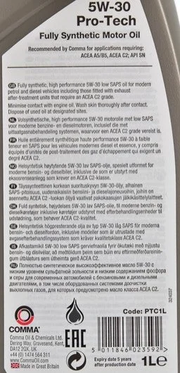 Олія моторна Pro-Tech 5W-30 (1 л) COMMA PTC1L