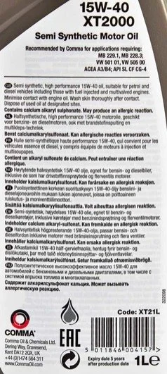 Олія моторна XT2000 15W-40 (1 л) COMMA XT21L