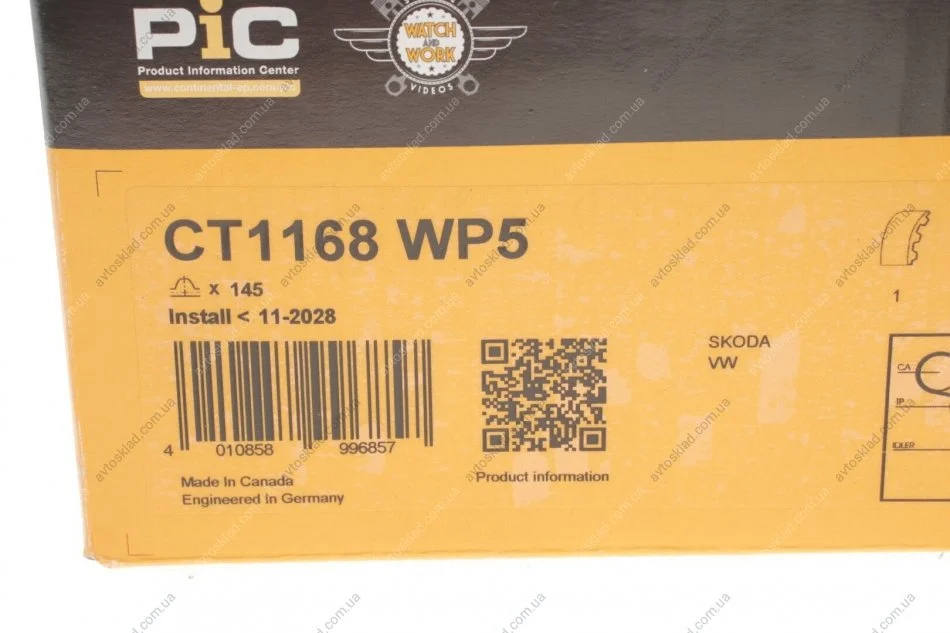 Комплект ременя ГРМ + помпа Contitech CT1168WP5