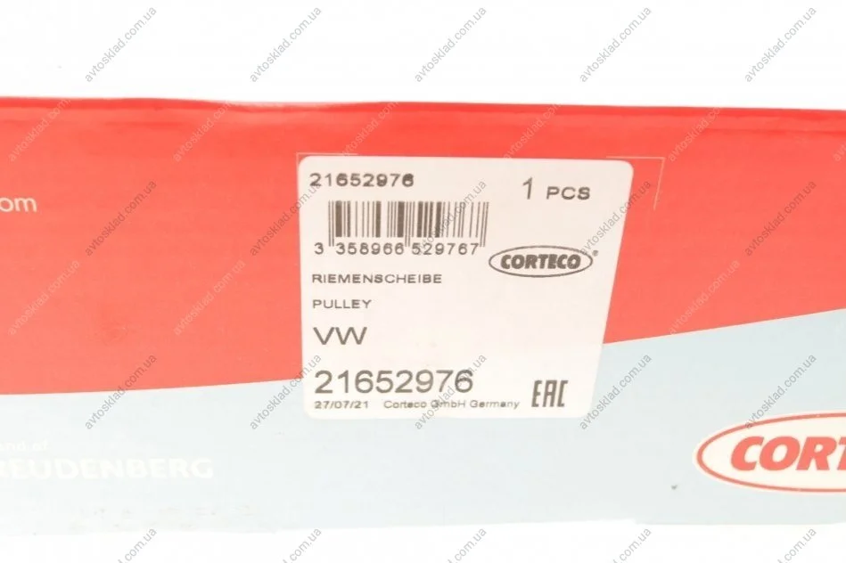 Ремінний шків, колінчастий вал VW CORTECO 21652976