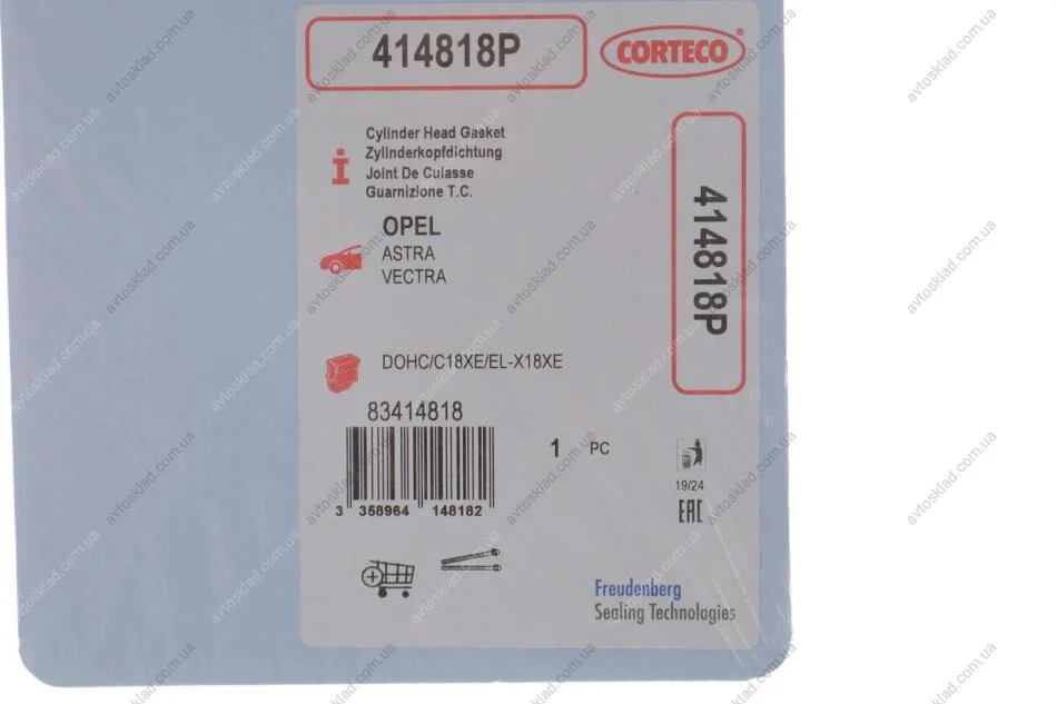 Прокладка головки блоку циліндрів CORTECO 414818P