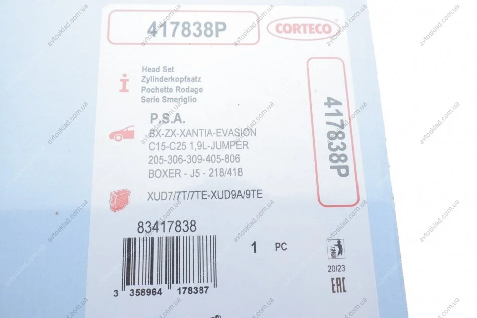 Комплект прокладок, головка циліндра CORTECO 417838P