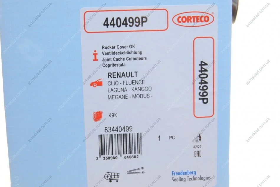 Прокладка клапанної кришки Renault 1,5 dCi K9K 05-0 CORTECO 440499P