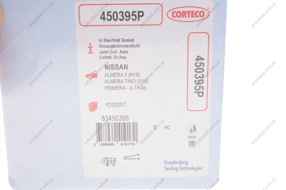 Прокладка, впускний колектор CORTECO 450395P