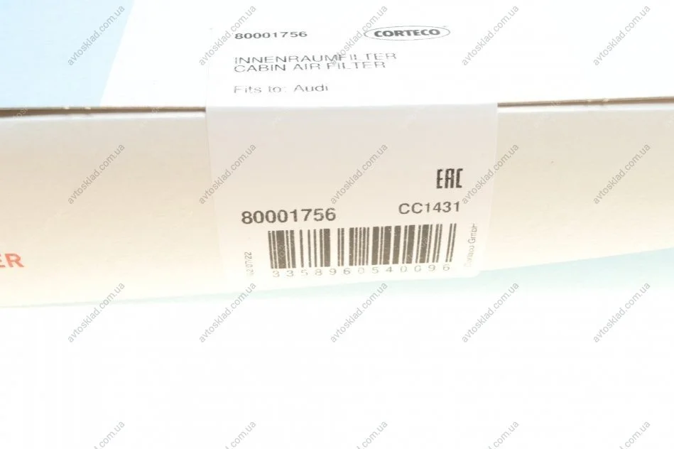 Фільтр салону (вугільний) CORTECO 80001756