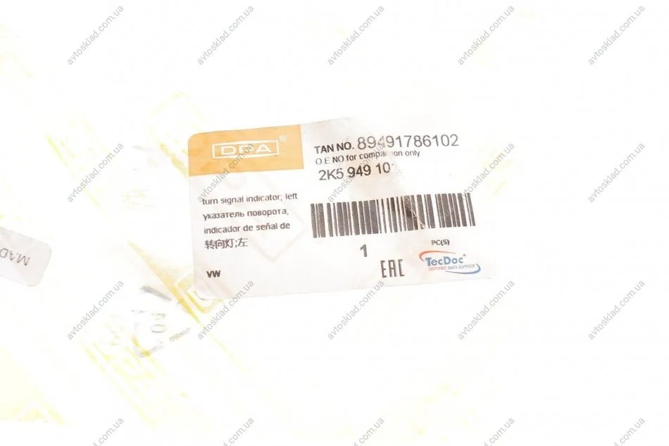 Ліхтар покажчика повороту DPA 89491786102