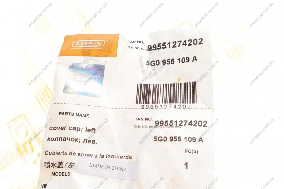 Кришка форсунки омивача фари ліва VW Golf (13-) DPA 99551274202
