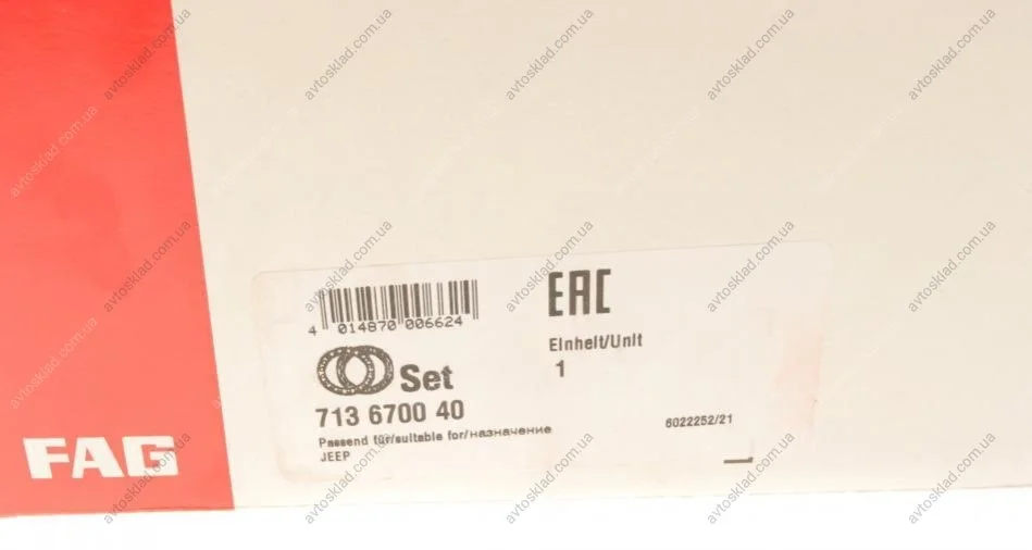 Підшипник маточини колеса, к-кт. FAG 713 6700 40