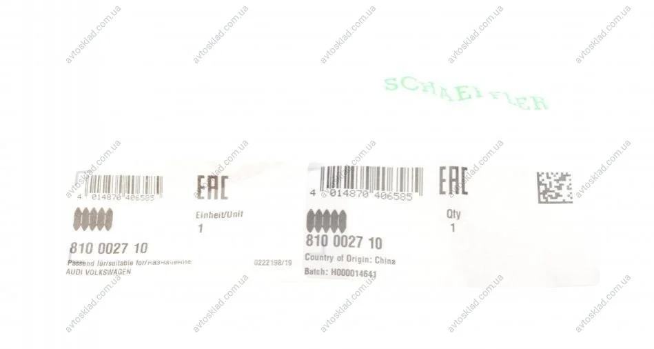 Аналоги "810 0027 10 FAG":