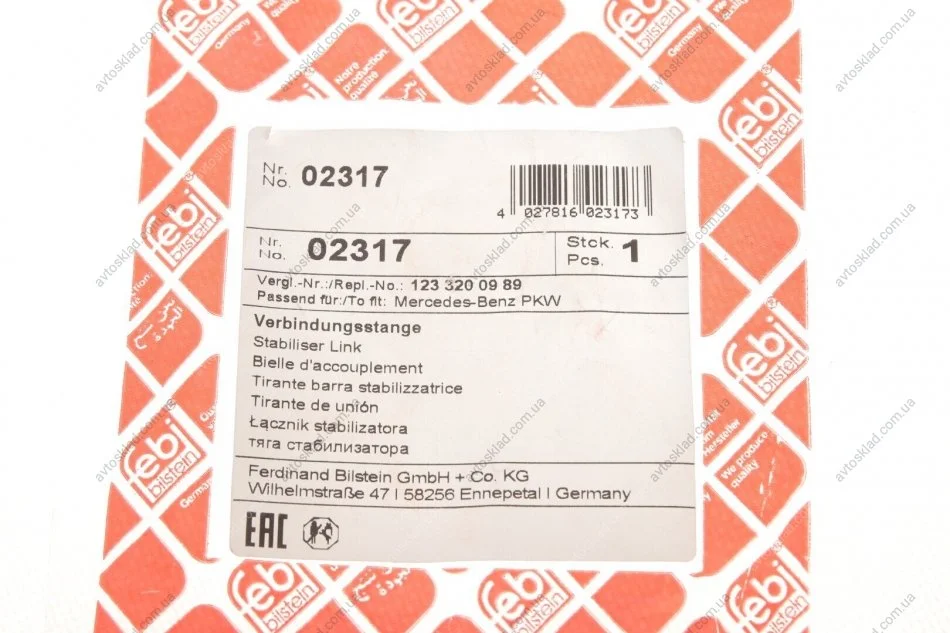 Тяга стабілізатора FEBI BILSTEIN 02317