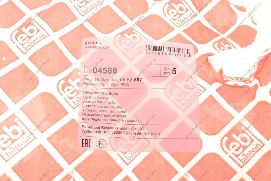 Прокладка масляного піддону Opel (FEBI) FEBI BILSTEIN 04588