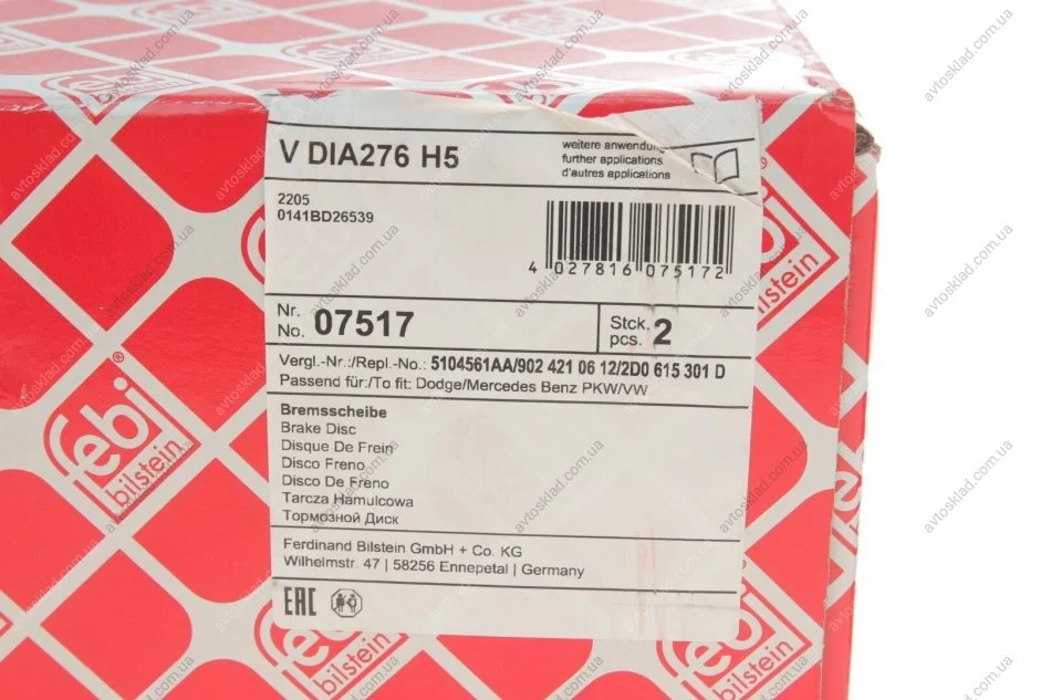 Диск гальмівний MB SPRINTER, LT 28-35, LT 28-46, передн., вент. (FEBI) FEBI BILSTEIN 07517