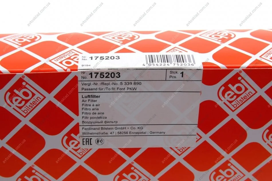 Повітряний фільтр FORD Ranger "2.0EcoBlue "18>> FEBI BILSTEIN 175203