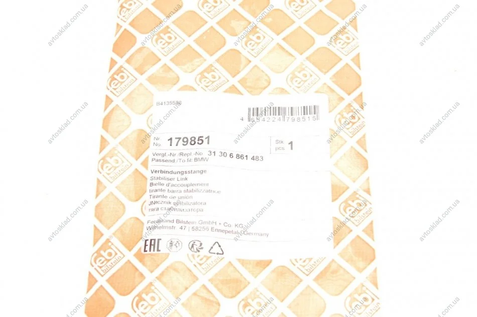 Кронштейн(тяга) стабілізатора з гайками FEBI BILSTEIN 179851