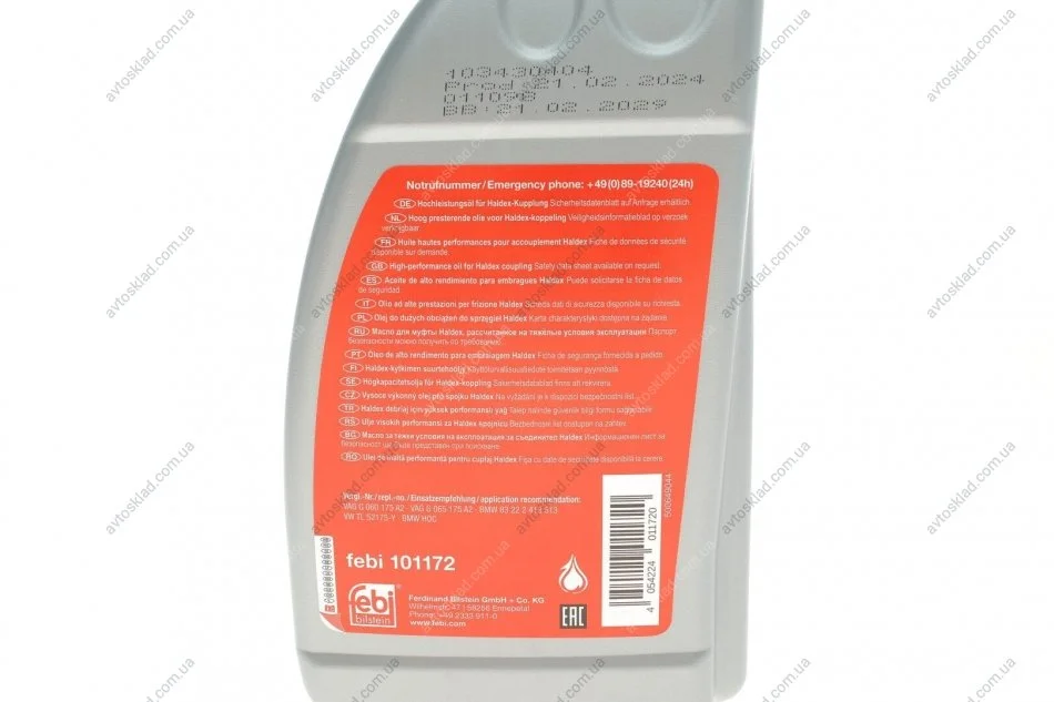 К-т сервісний для зчеплення Haldex(кришка, фільтр, рідина 101172 1Х 0,850л) FEBI BILSTEIN 181848
