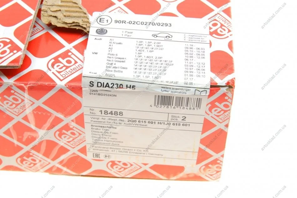 Диск гальмівний зад. Roomster 06- (232x9) FEBI BILSTEIN 18488