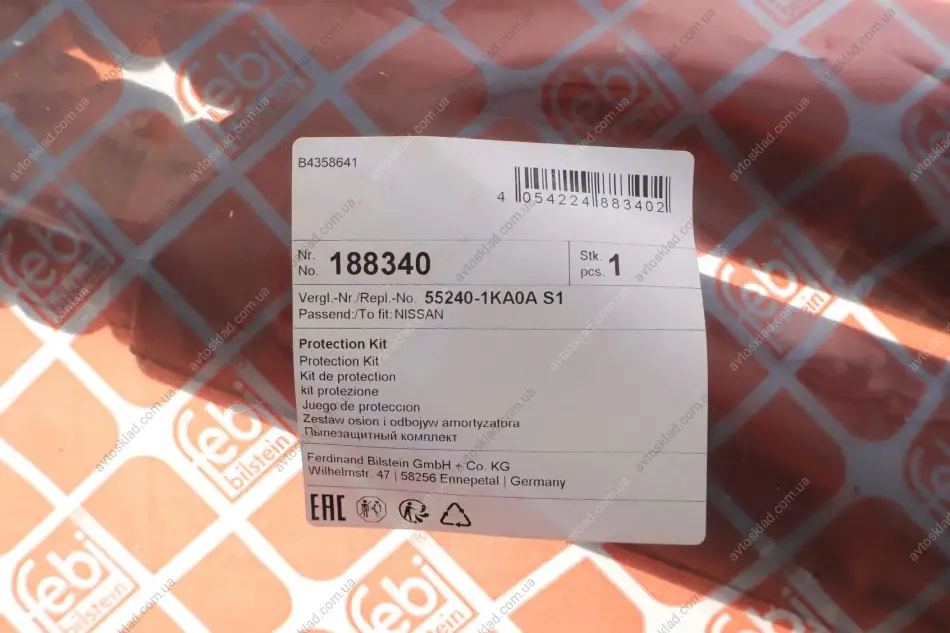 Пильовик-відбійник аморт. Nissan Juke (2010-19), Leaf (ZE0, ZE1) задн.компл. (Febi) FEBI BILSTEIN 188340