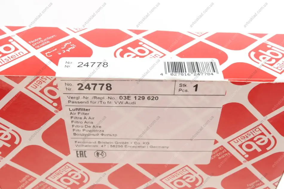 Фільтр повітряний SEAT IBIZA, VW POLO (FEBI) FEBI BILSTEIN 24778