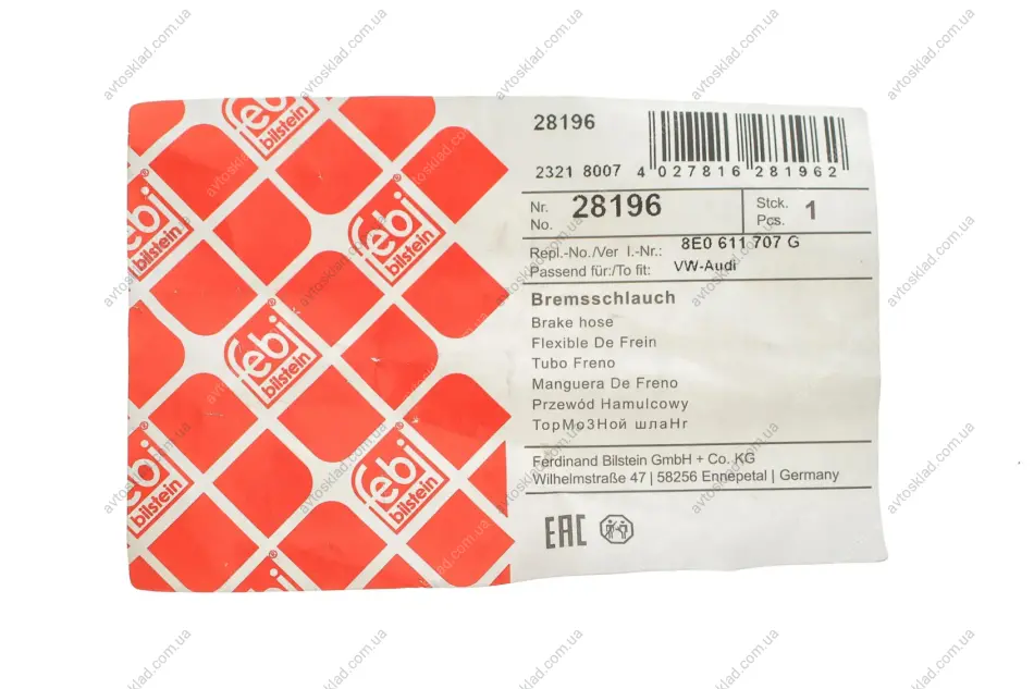 Шланг гальмівний FEBI BILSTEIN 28196