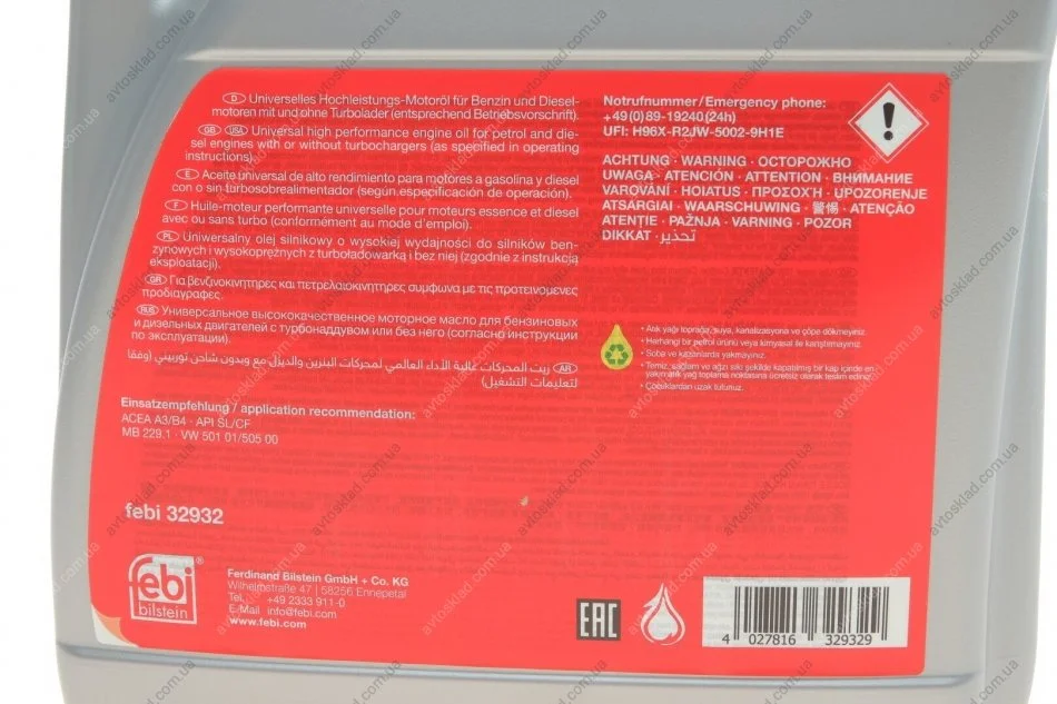 Олія моторна Febi Engine Oil 10W-40 (4 л) FEBI BILSTEIN 32932