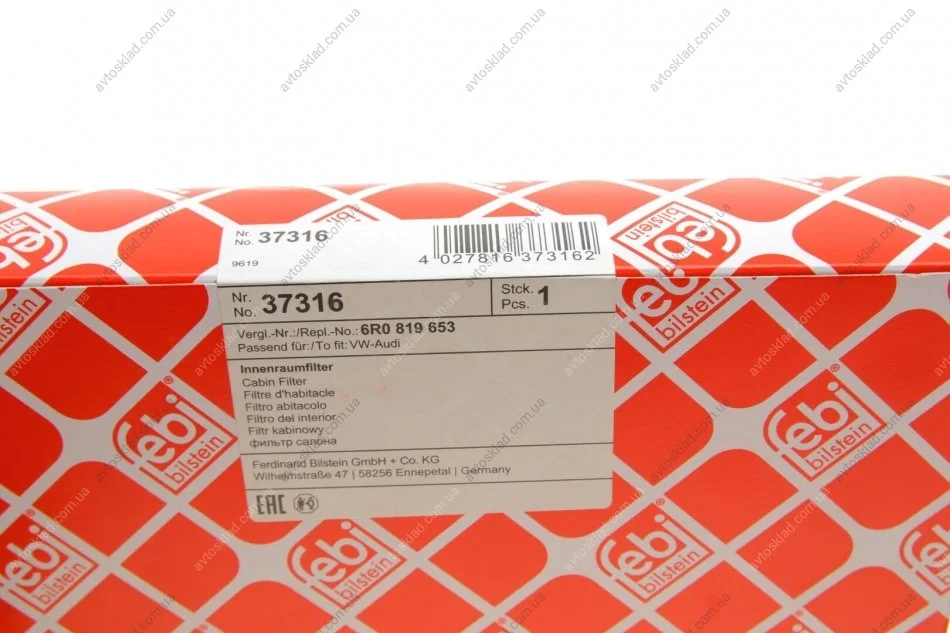 Змінний фільтруючий елемент повітряного фільтра салону FEBI BILSTEIN 37316