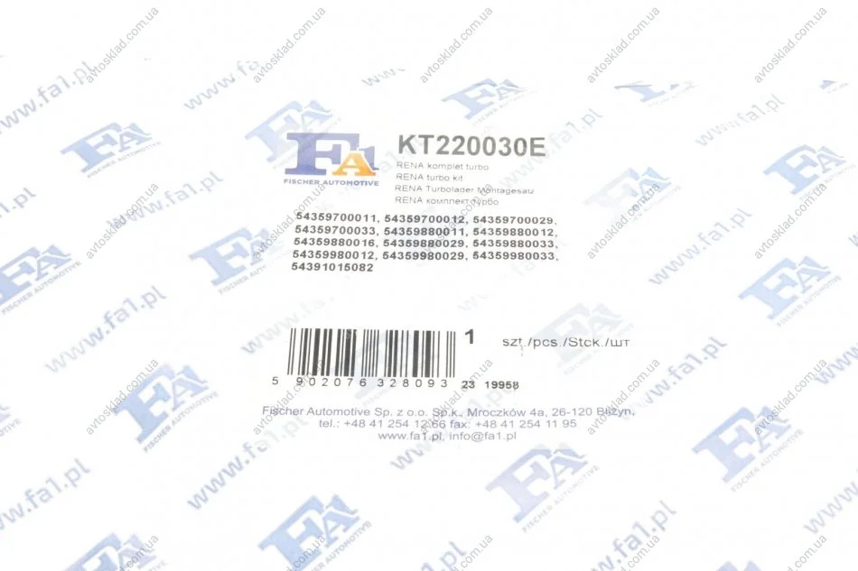 Аналоги "KT220030E Fischer Automotive One (FA1)":
