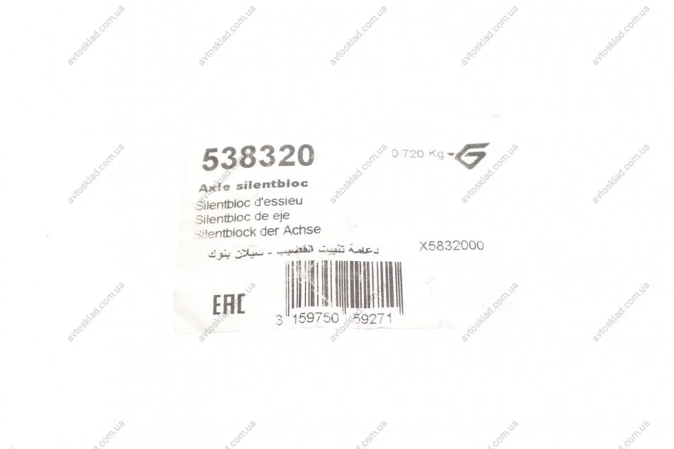 Сайлентблок осі Citroen Berlingo/Peugeot Partner (96-) HUTCHINSON 538320