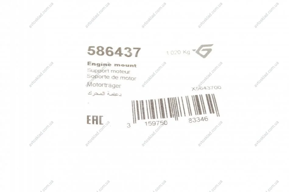 Подушка двигуна HUTCHINSON 586437