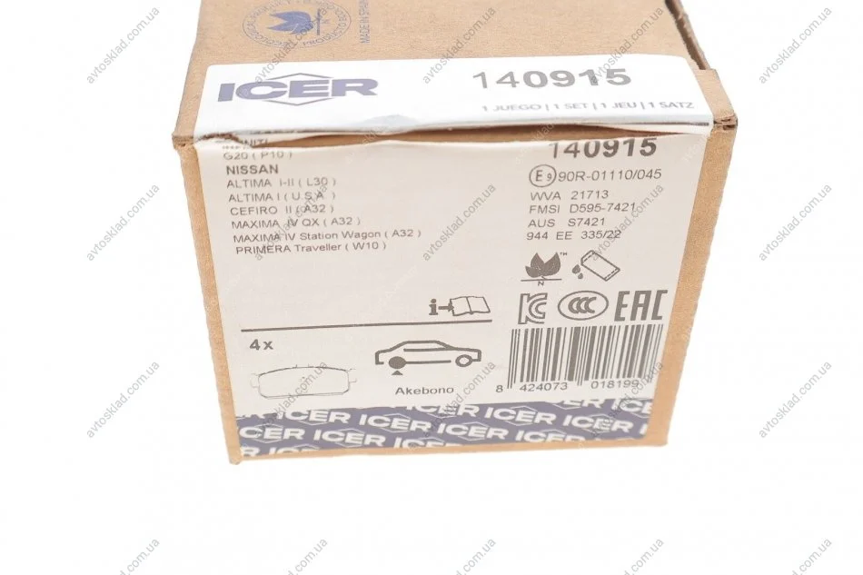 Комплект гальмівних колодок (дискових) ICER 140915