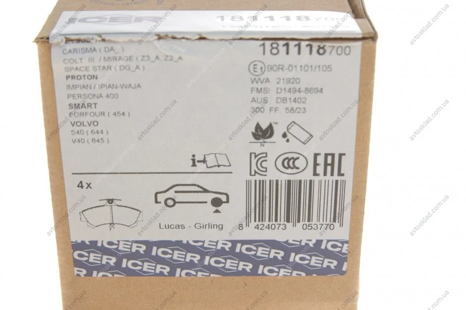 Гальмівні колодки ICER 181118-700