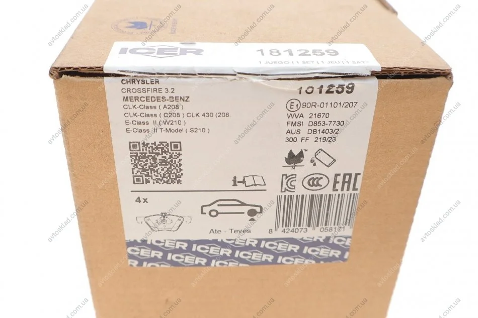 Комплект гальмівних колодок (дискових) ICER 181259