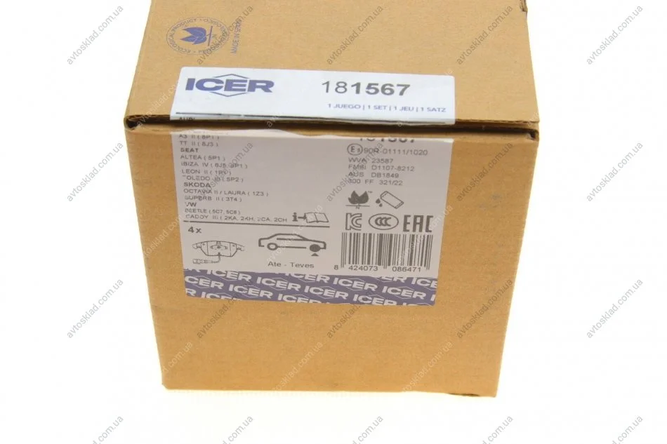 Гальмівні колодки ICER 181567