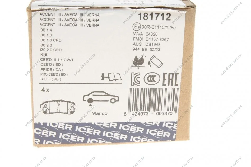 Гальмівні колодки ICER 181712
