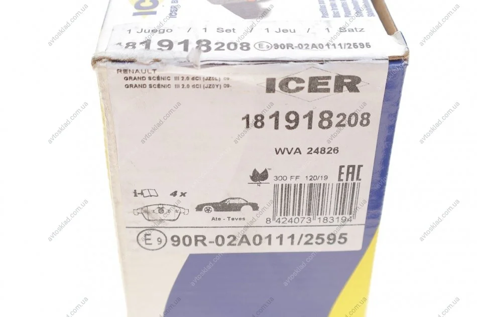Комплект гальмівних колодок (дискових) ICER 181918-208