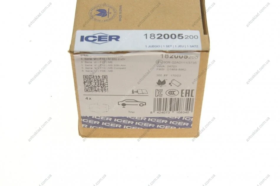 Комплект гальмівних колодок (дискових) ICER 182005-200