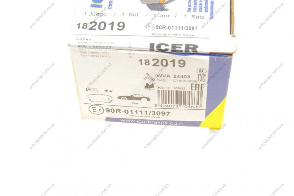 Комплект гальмівних колодок, дискове гальмо ICER 182019