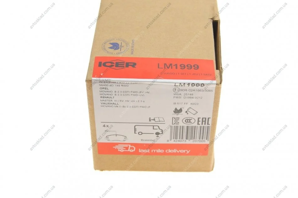 Комплект гальмівних колодок (дискових) ICER LM1999