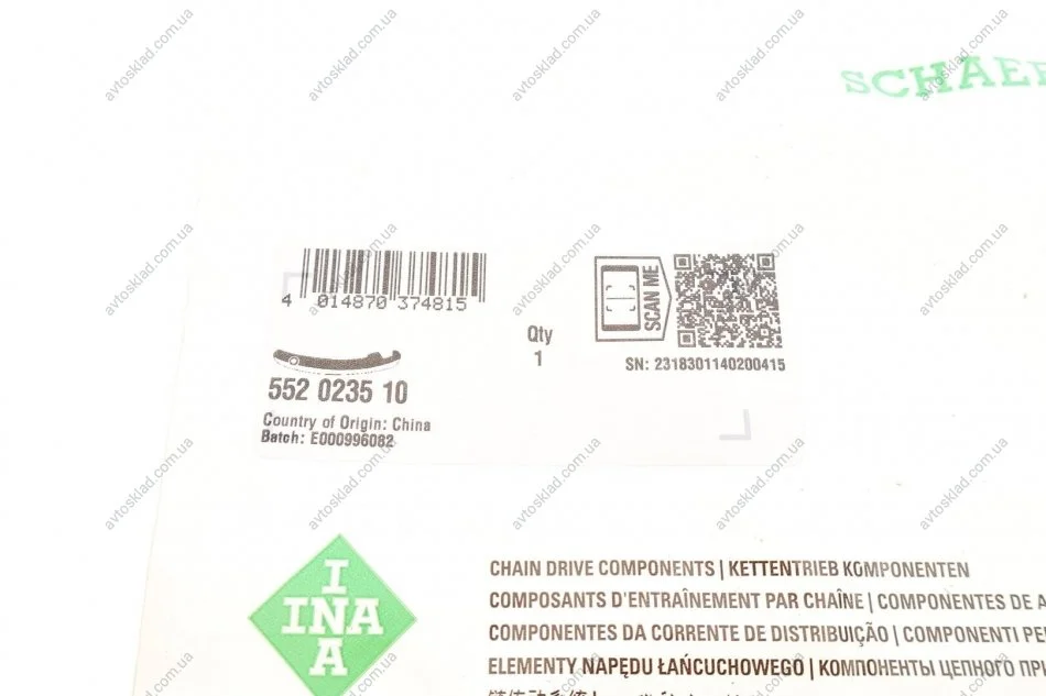 Натяжна планка ланцюга ГРМ INA 552 0235 10