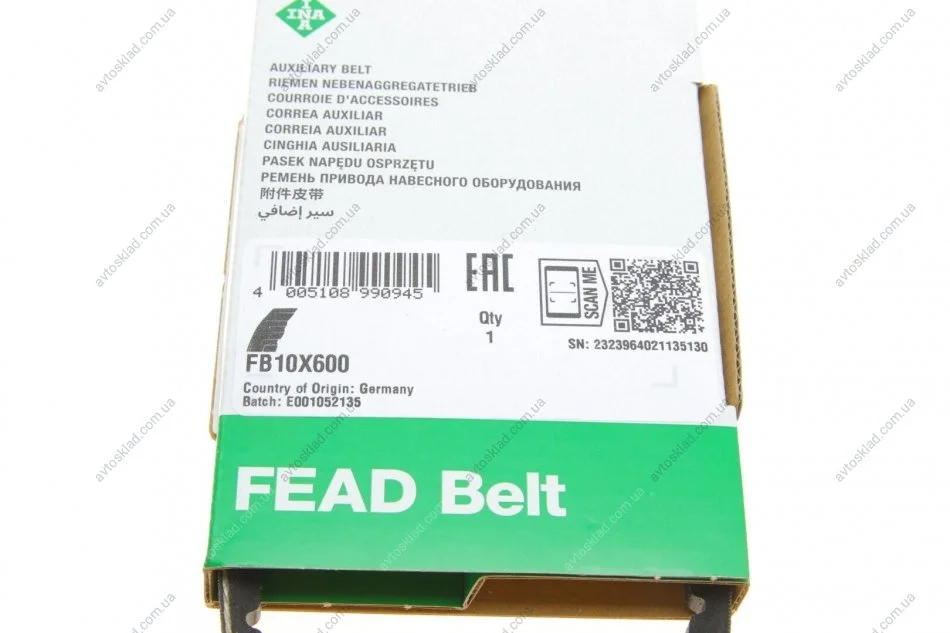 Ремінь генератора клиновий INA FB10X600