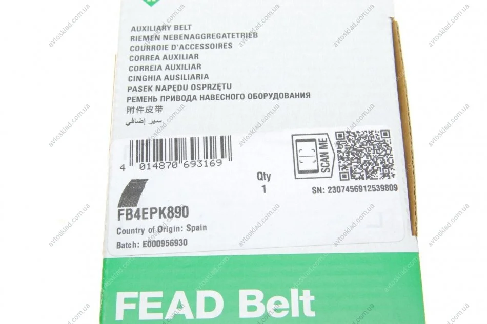 Ремінь генератора поліклиновий INA FB 4EPK890