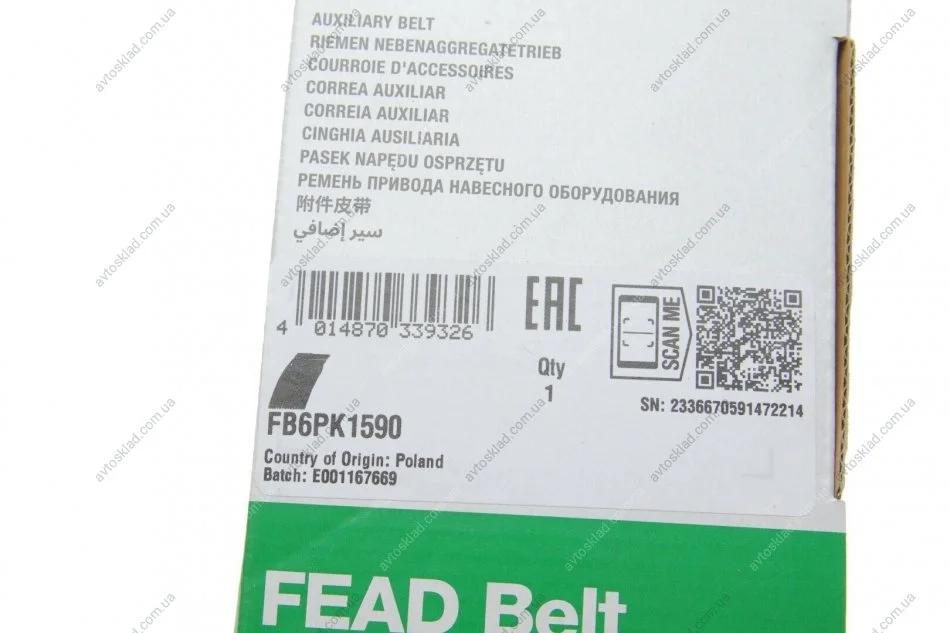 Ремінь генератора поліклиновий INA FB6PK1590