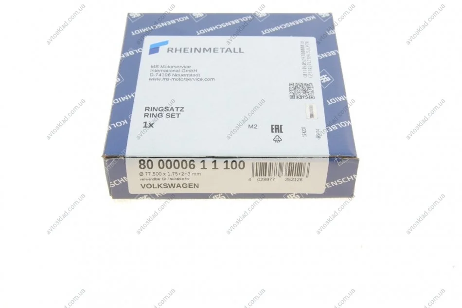 Кільця поршневі VW 76,5+1,00 1,75-2-3 VW-Audi 1cyl KOLBENSCHMIDT 800000611100