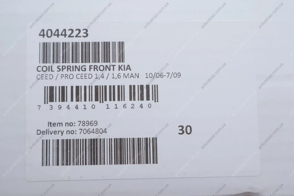 Пружина підвіски передня, KIA Ceed / Pro Ceed 1,4 / 1,6 Man 10/06-7/09 LESJOFORS 4044223