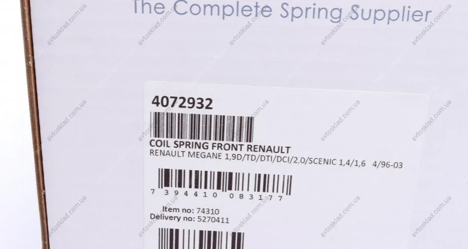 Пружина підвіски передня, RENAULT Megane 1,9D/TD/DTI/DCI/2,0/Scenic 1,4/1,6 4/96-03 LESJOFORS 4072932