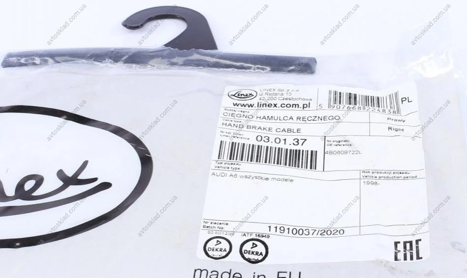 Трос ручного гальма LINEX 03.01.37