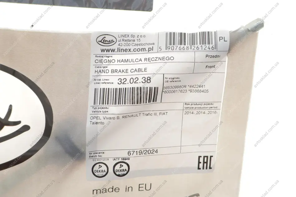 Трос ручного гальма LINEX 32.02.38