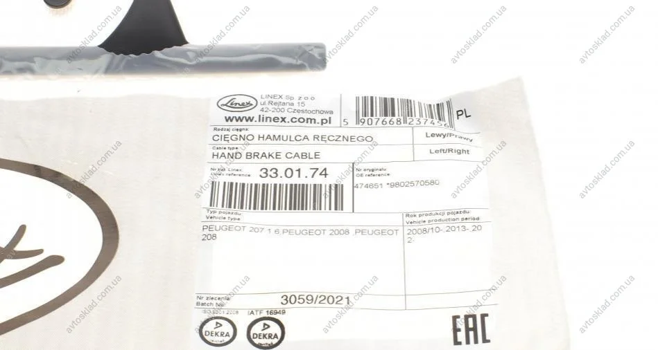 Трос ручного гальма LINEX 33.01.74
