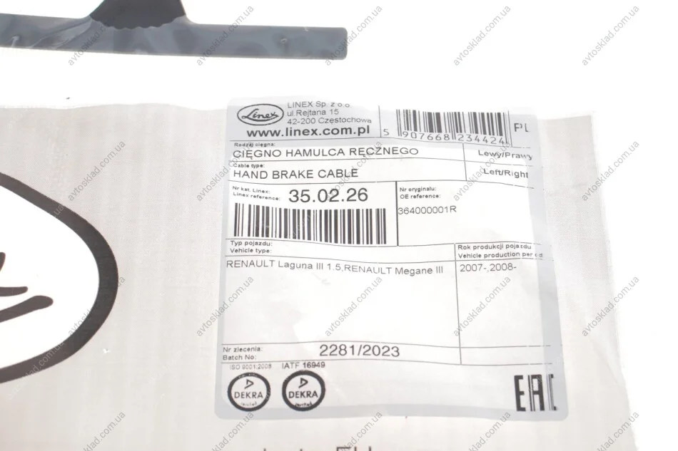Трос зупиночних гальм LINEX 35.02.26