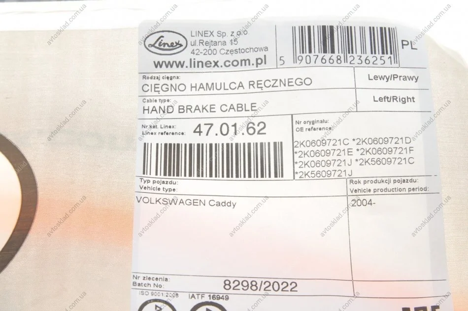 Трос ручного гальма задн. лев.=прав. VW Caddy 10> /1705/541/ LINEX 47.01.62
