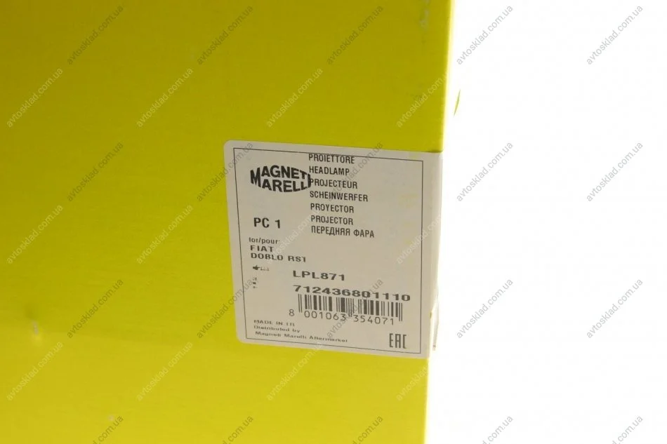 Фара пра. FIAT DOBLO 05-09 MAGNETI MARELLI 712436801110
